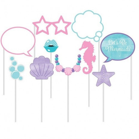 Tira fotos ou selfies divertidas com as tuas amigas com este pack de 10 adereços de sereia na tua festa de aniversário.