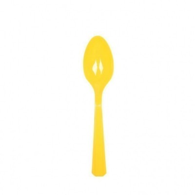 Pack de 10 unidades de colheres de plástico na cor amarelo. Ideal para festas aniversário.