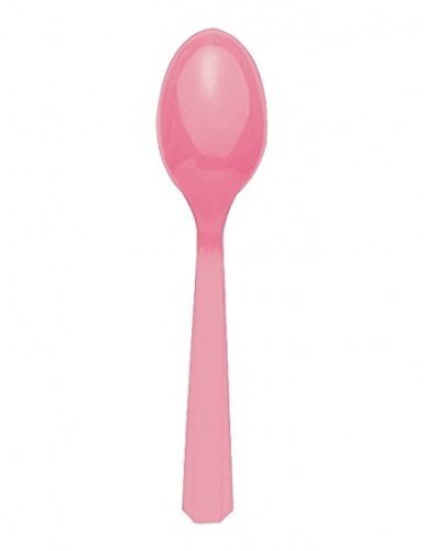 Pack de 10 unidades de colheres de plástico na cor rosa claro. Ideal para festas aniversário.