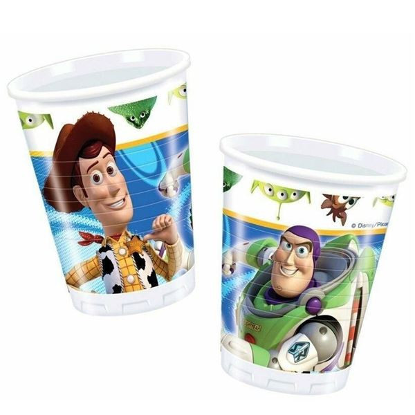 Conjunto de 10 copos de plástico do Toy Story, para decoração das festas de aniversário.