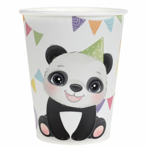 Conjunto de 10 copos de papel descartáveis eco-friendly com o tema de panda festa para decorar a tua festa de aniversário com o mesmo tema.