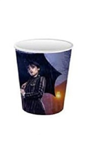 Conjunto de 10 copos de papel descartáveis com o tema da série Wednesday.
