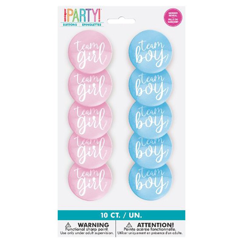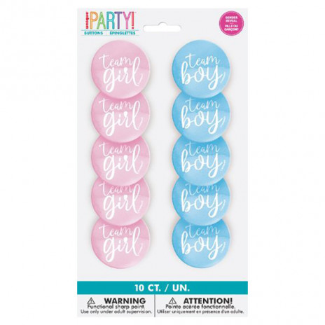 Conjunto de 10 crachás sortidos para chá de revelação de bebé ou festa baby shower.