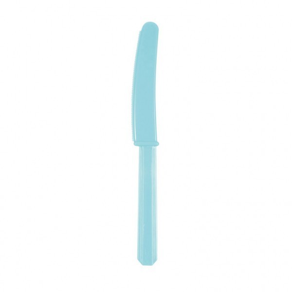 Pack de 10 unidades de facas de plástico na cor azul claro. Ideal para festas aniversário.