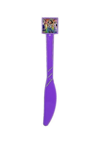 Conjunto de 10 facas de plástico do filme Encanto da Disney para decoração da tua festa de aniversário com o mesmo tema. A Mirabel e os restantes personagens querem participar na tua festinha.