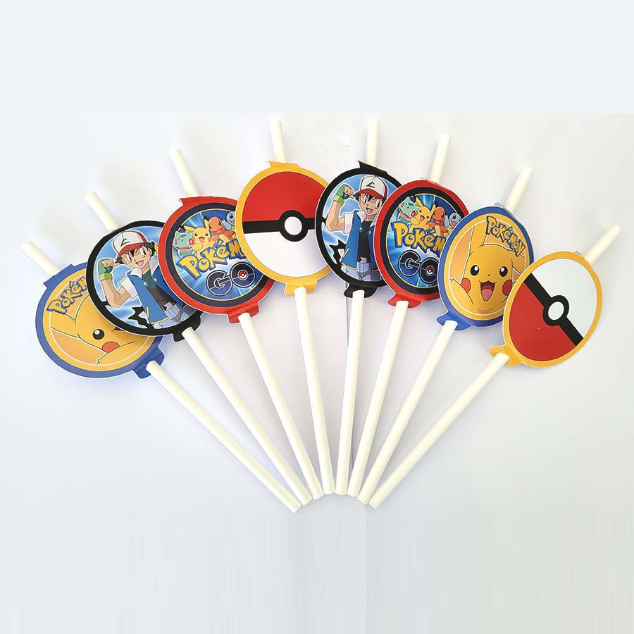 Conjunto de 10 palhinhas sortidas de papel biodegradável com o tema Pokémon.
