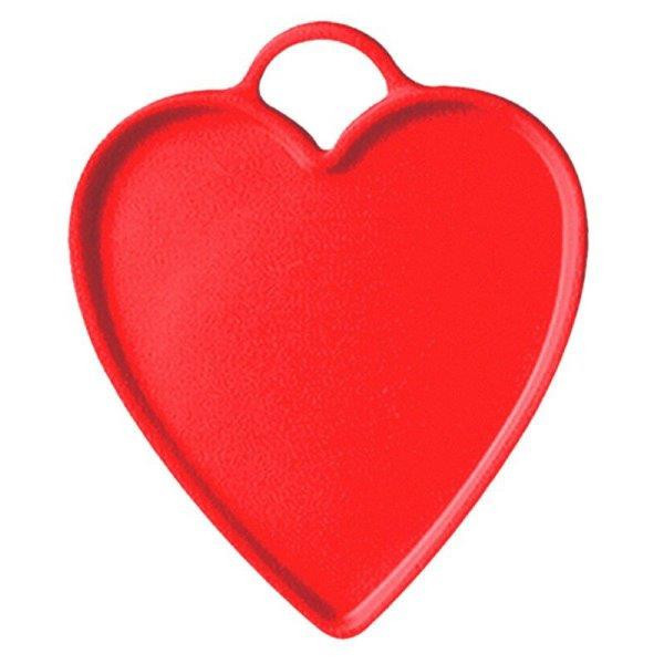 Conjunto de 10 pesos para balões em formato de coração vermelho.