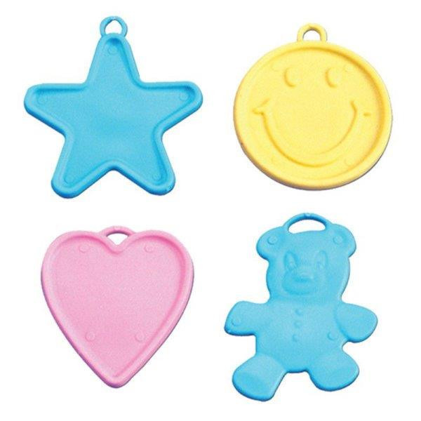 Conjunto de 10 pesos para balões em tons pastel com desenhos sortidos.
