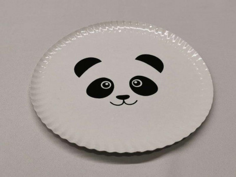 Conjunto de 10 pratos em cartão com rebordo, económicos do Panda, ideal para decorar a tua festa de aniversário com o mesmo tema.