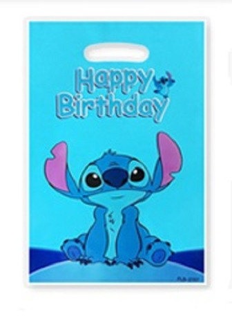 Conjunto de 10 sacos brinde em plástico do Stitch da Disney, ideal para colocar brindes ou doces na sua festa de aniversário com o mesmo tema.