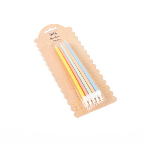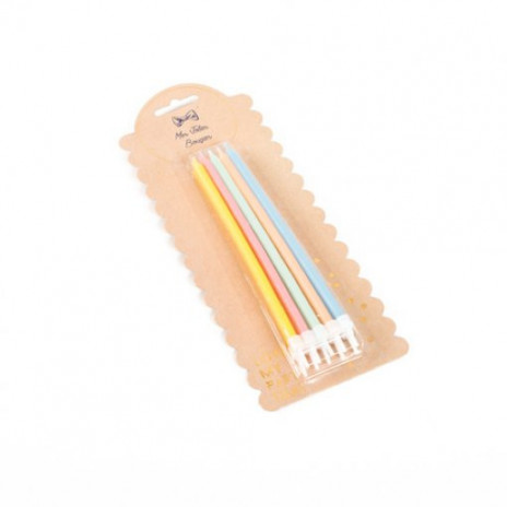 Conjunto de 10 velas lisas em vários tons pastel, ideais para qualquer bolo de aniversário.