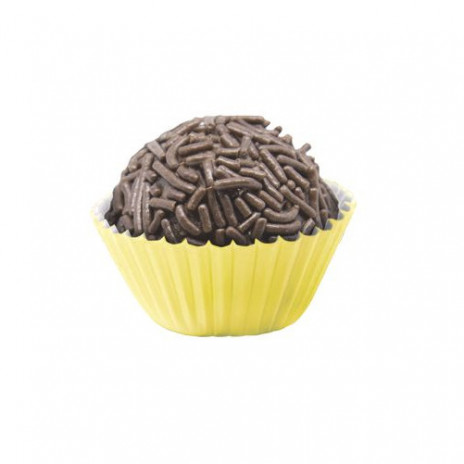 Embalagem com 100 forminhas de papel em amarelo, perfeito para brigadeiros e outros pequenos doces ou salgados. Vai ao forno e é anti gordura.