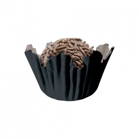 Embalagem com 100 forminhas de papel recortado em preto, perfeito para brigadeiros e outros pequenos doces ou salgados. Vai ao forno e é anti gordura.