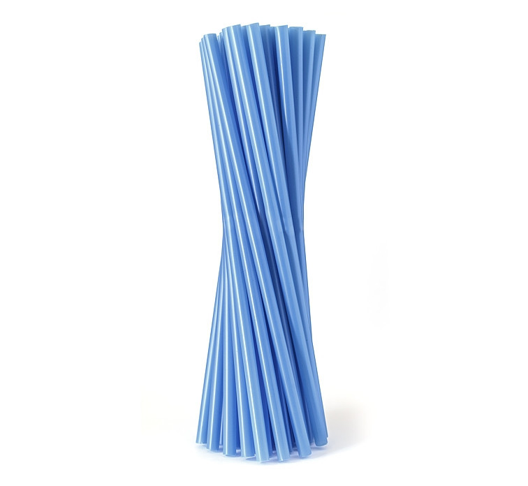 Pack de 100 palhinhas de plástico na cor azul.
