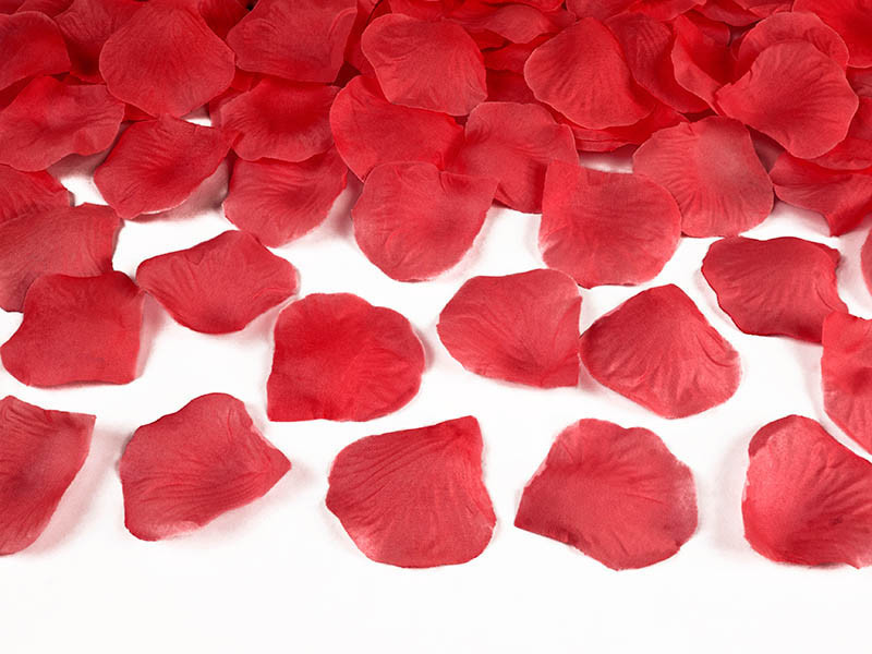 Embalagem com 100 pétalas de rosa na cor vermelho ou encarnado para usar em decoração de festas ou em eventos especiais, como por exemplo no dia dos namorados.