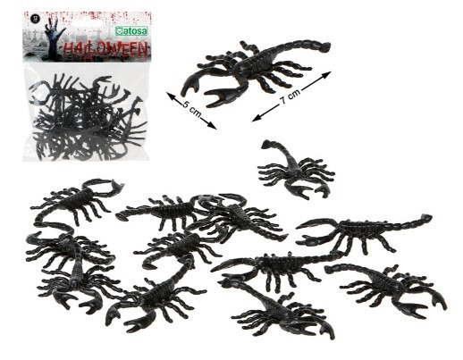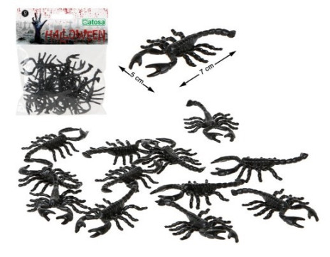 Ideal para pregar sustos nas festas e decorações de halloween e carnaval, um conjunto de 12 pequenos escorpiões.