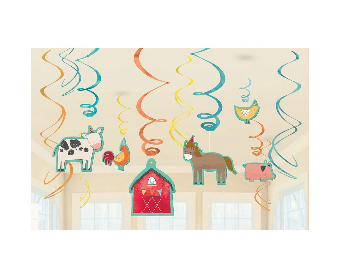 Conjunto de doze espirais decorativas dos Animais da Quinta para a sua festa de aniversário.