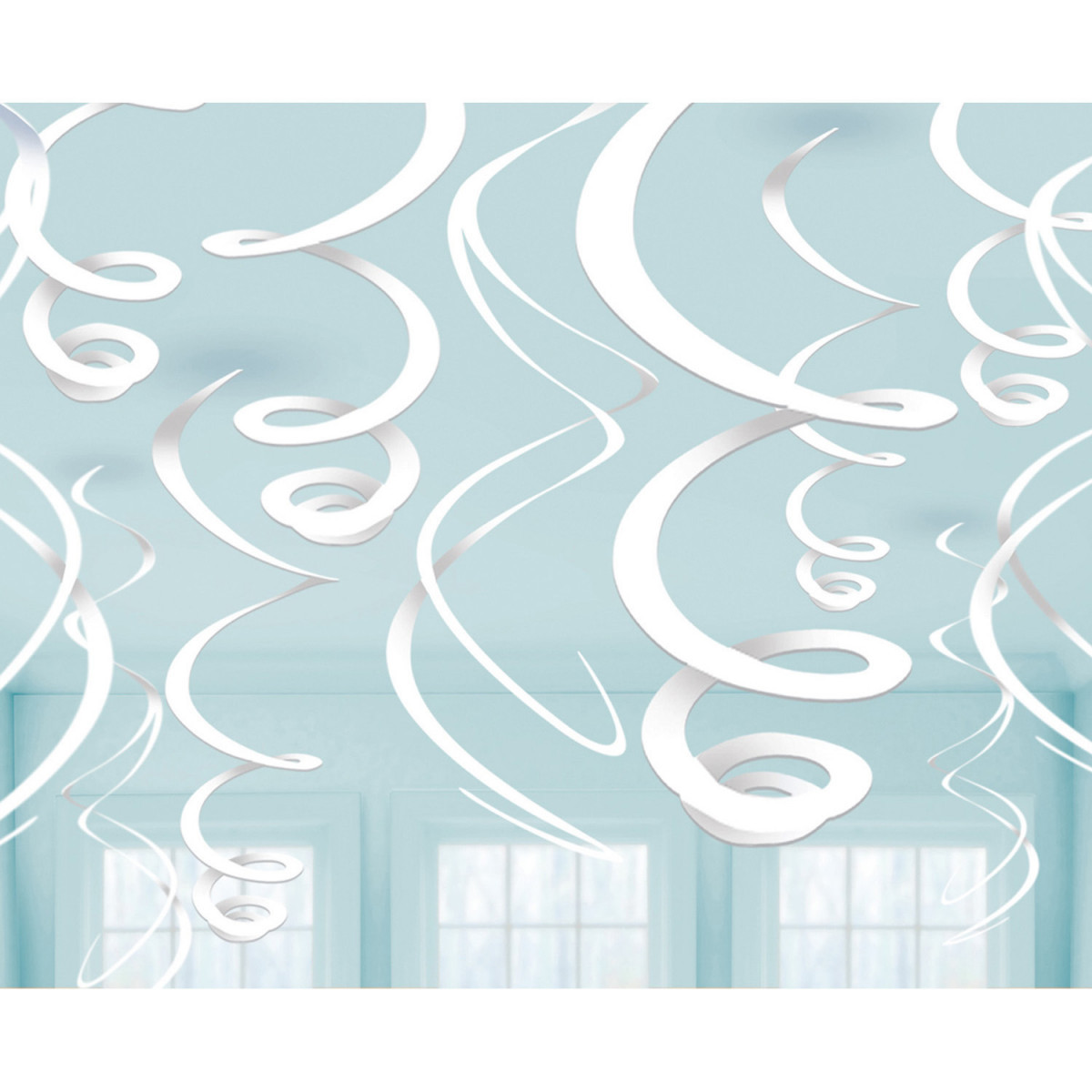 Embalagem com 12 espirais decorativas brancas de 55cm.