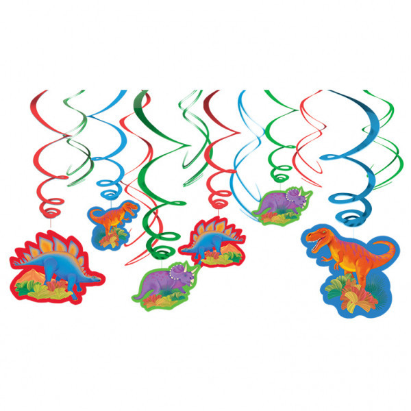 Conjunto de doze espirais decorativas dos dinossauros para a sua festa de aniversário.