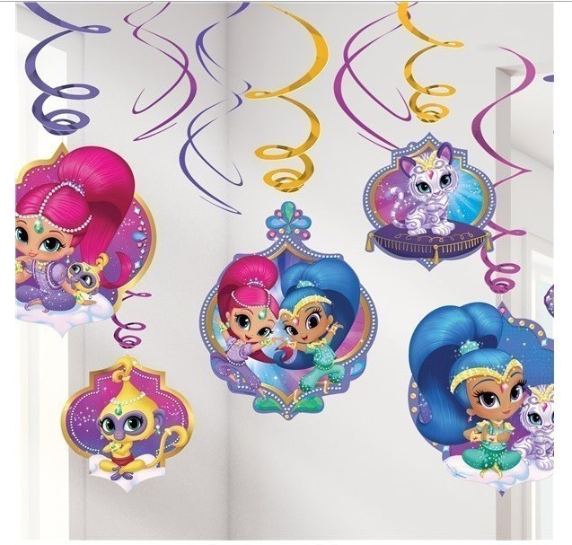 Embalagem com 12 espirais decorativas sortidas com 6 imagens da Shimmer e Shine