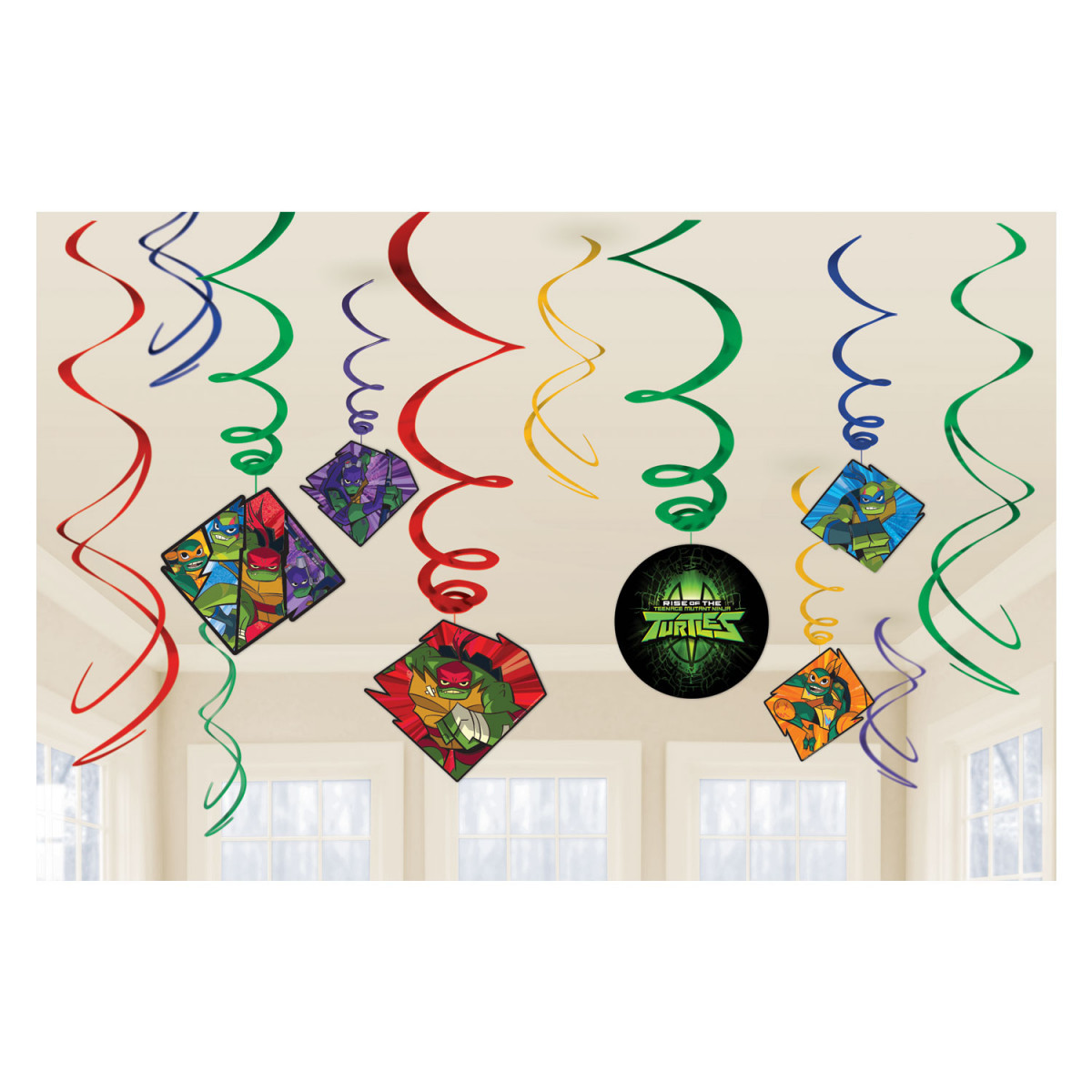 Conjunto de doze espirais decorativas das Tartarugas Ninja para a sua festa de aniversário.