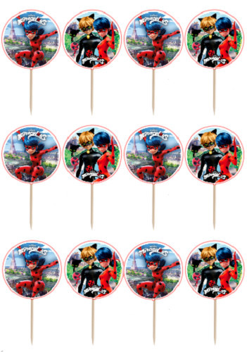 Conjunto de 12 mini toppers artesanais da Ladybug para cupcakes, salgadinhos ou finger food. Um complemento de decoração ideal para a festa de aniversário.
