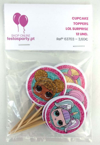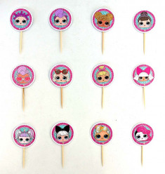 Conjunto de 12 toppers para cupcakes ou para decorar outros elementos da com inspiração nas bonequinhas Lol Surprise. Inclui 12 bonecas diferentes e sortidas.