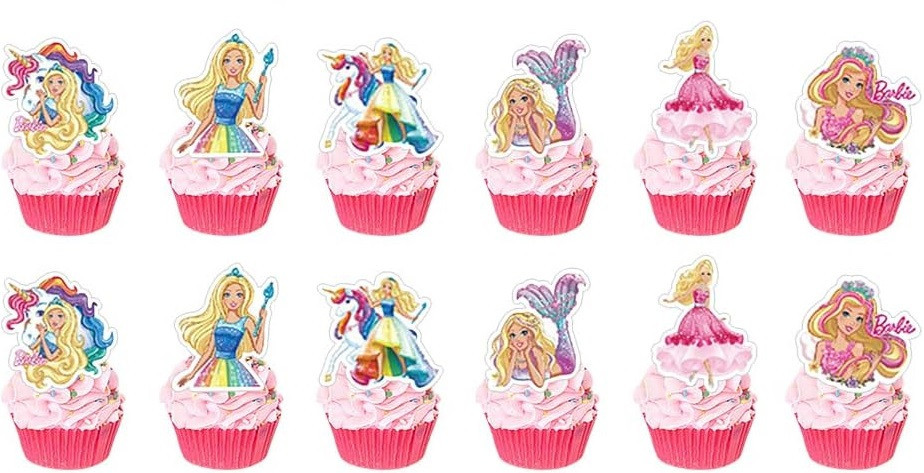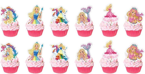 Conjunto de 12 mini toppers para cupcakes, docinhos ou finger food com o tema da Barbie.