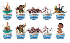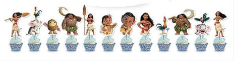 Conjunto de 12 mini toppers para cupcakes, docinhos ou finger food com o tema da Vaiana.