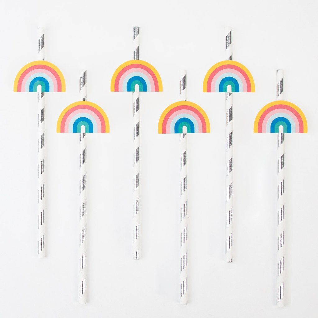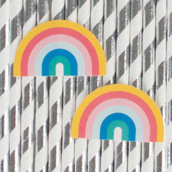 Conjunto de 12 palhinhas de papel para a decoração da mesa nas festas de aniversário com arco íris.