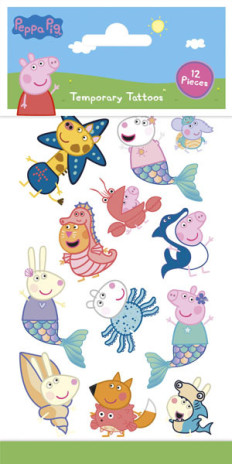 Conjunto de 12 tatuagens da Porquinha Peppa. Testado dermatologicamente.