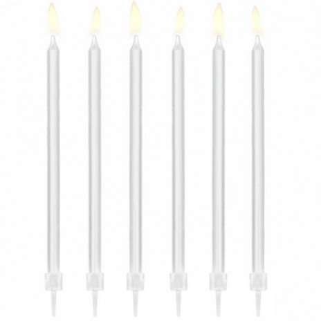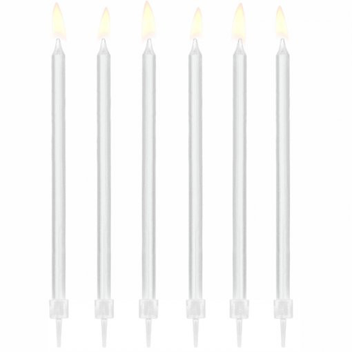 Conjunto de 12 velas lisas brancas com suporte, ideais para qualquer bolo de aniversário.