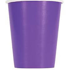 Conjunto de 14 copos papel descartáveis em roxo neon.