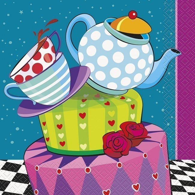 Pack de 16 guardanapos de folha dupla para festa com o tema Alice no País das Maravilhas.