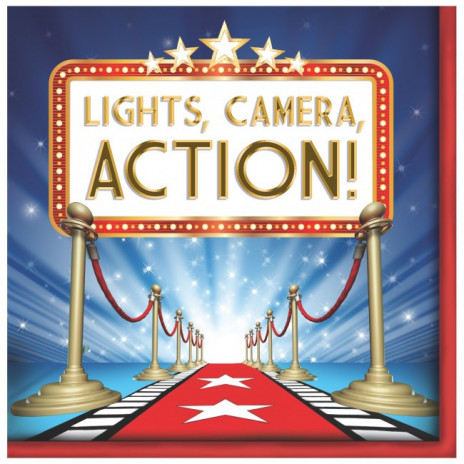 Pack de 16 guardanapos com as medidas 33x33cm aproximadamente para as Festas Hollywood.