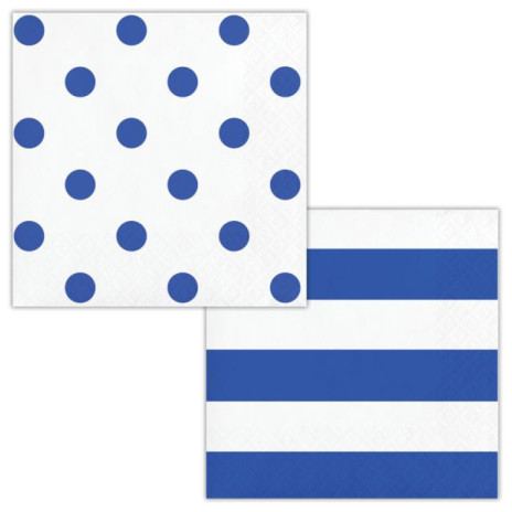 16 Guardanapos Cocktail Bolinhas Riscas Azul