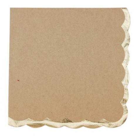 Conjunto de 16 guardanapos em papel kraft com rebordo em dourado para decoração de festas ou eventos.