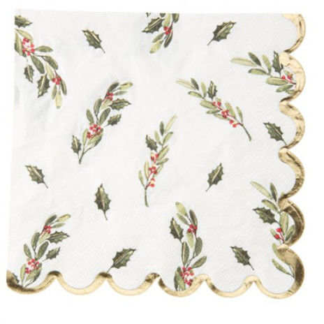 Conjunto de 16 guardanapos com azevinhos para decoração da sua mesa natalícia.