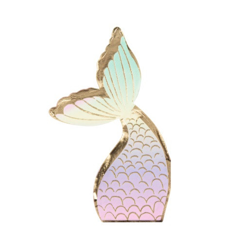 Conjunto de 16 guardanapos com a forma de cauda de sereia em tons pastel para a tua festa de aniversário com o mesmo tema.