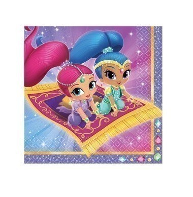 Pack com 16 guardanapos com o tema Shimmer e Shine para tornar a tua festa de aniversário num autêntico sucesso.