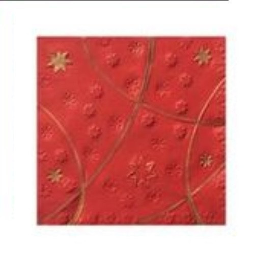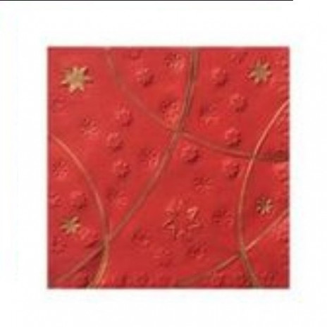 Conjunto de 16 guardanapos de Natal, em tons de vermelho com estrelas e fitas em dourado para decoração da sua mesa de Natal.