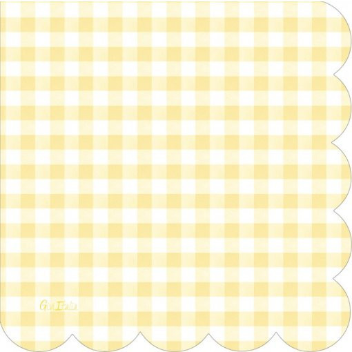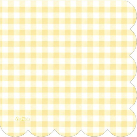 Embalagem de 16 guardanapos aos quadrados amarelos e brancos, que poderá conjugar com o tema da quinta, picnic, vichy, etc.