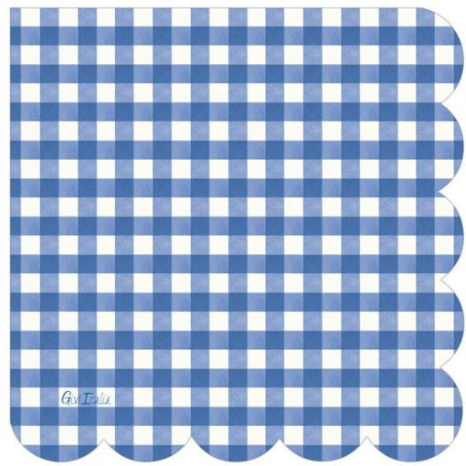 Embalagem de 16 guardanapos aos quadrados azuis e brancos, que poderá conjugar com o tema da quinta, picnic, vichy, etc.
