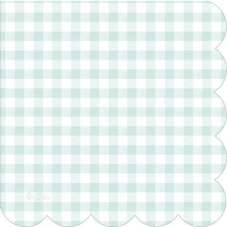 Embalagem de 16 guardanapos aos quadrados menta e brancos, que poderá conjugar com o tema da quinta, picnic, vichy, etc.