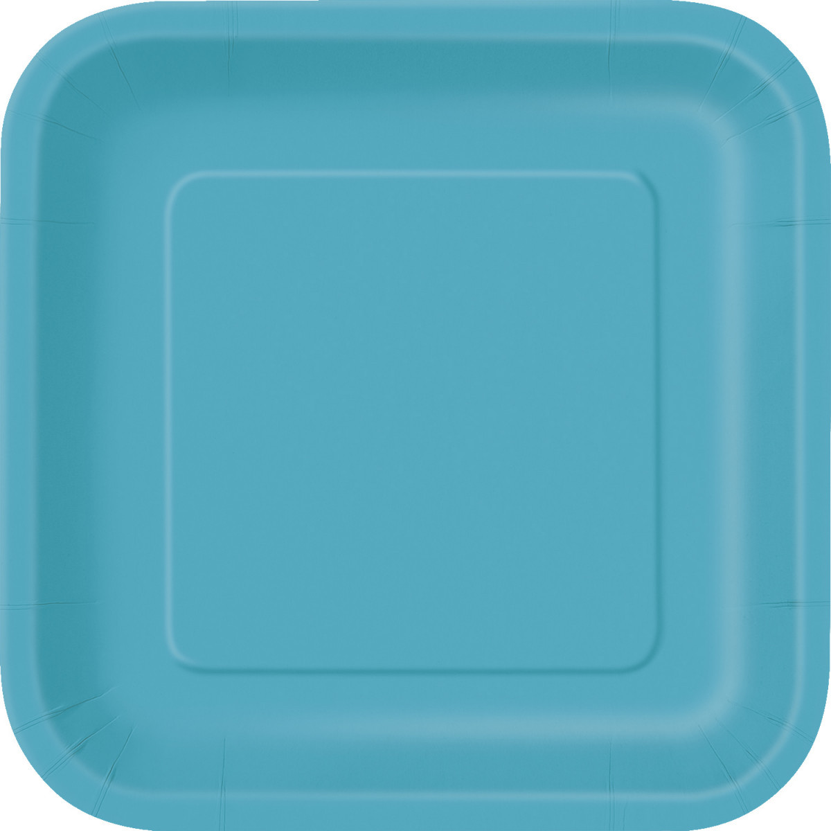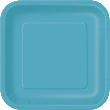 Conjunto de 16 pratos pequenos descartáveis em azul caribe para qualquer tipo de festa, são igualmente muito práticos e funcionais.