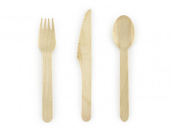 Talheres em madeira para complementar qualquer mesa. Inclui 6 facas, 6 garfos e 6 colheres amigos do ambiente.