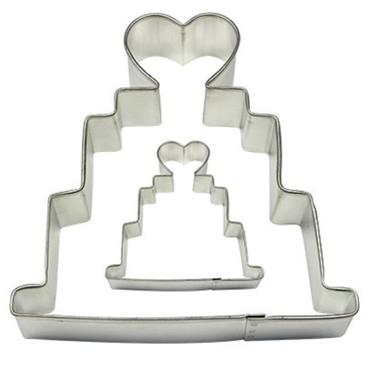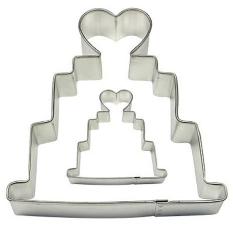Pack de 2 cortantes em metal para a execução de bolachinhas ou bolinhos em forma de bolo de casamento para decorações com maçapão ou pasta de acúcar da marca PME.