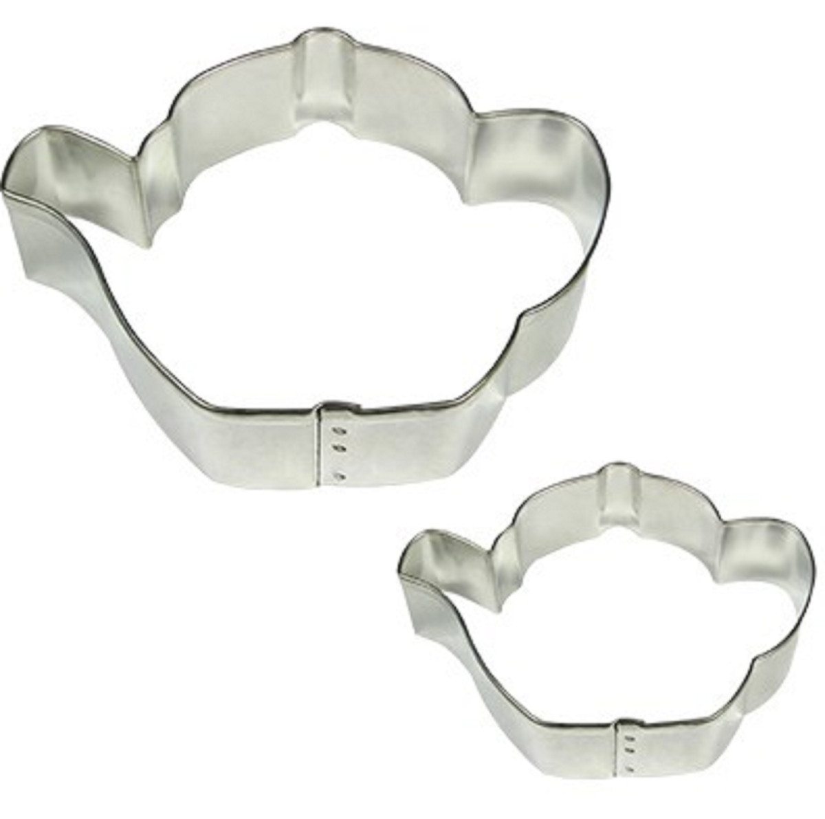 Pack de 2 cortantes em metal para a execução de bolachinhas ou bolinhos em forma de Bule de Chá para decorações com maçapão ou pasta de acúcar da marca PME.