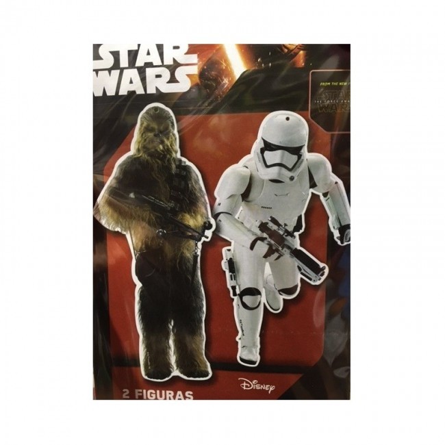 Decora a tua festa de aniversário Star Wars com este pack de figuras em cartão do Storm Trooper e Chewbacca