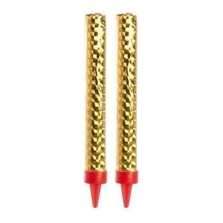 Cante Parabéns a Você ou Happy Birthday to You em grande estilo com este blister de 2 velas para imitação de fogo de artificio (efeito sparkle) que não pode faltar em qualquer bolo de aniversário nas festas. Não liberta cheiro nem fumos.